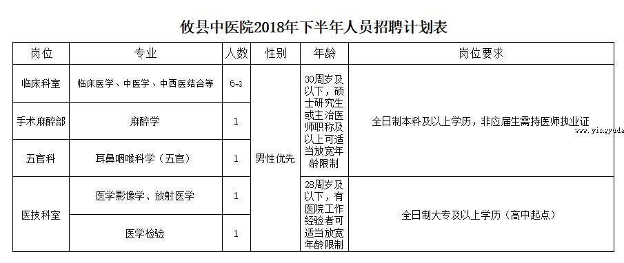 (二)医技科室岗位要求全日制大专及以上学历(高中起点),应届或往届生(往届生需持医师执业证书),年龄在28周岁以下。