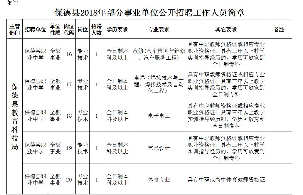 5、岗位所需要的其它条件,具体资格条件等详见《保德县2018年部分事业单位公开招聘工作人员简章》。