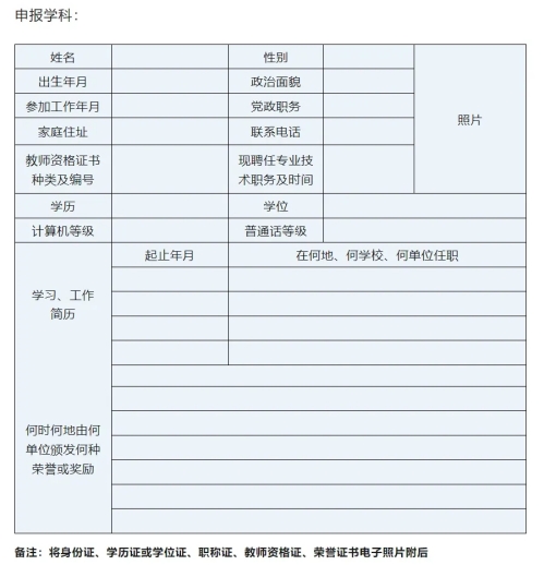 武汉市双湖中学(武汉市卓刀泉中学南湖校区)校聘教师报名登记表