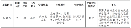 因工作需要,经研究决定,面向社会公开招聘景宁畲族自治县卫生健康局下属单位托育综合服务中心劳务派遣工作人员2名。现将有关事项公告如下: