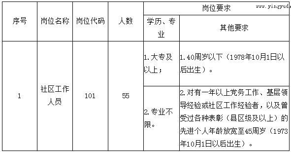 2.工作责任心、事业心强,服从组织安排,自愿从事社区工作;