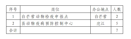 县农业农村局公开招募特聘动物防疫专员7名,岗位包括县动物疫病预防控制中心、白芒营动物检疫申报点,具体由县动物疫病预防控制中心统一调配。