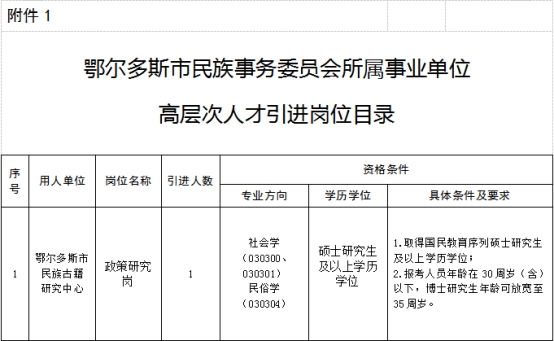 附件:1.鄂尔多斯市民族事务委员会所属事业单位引进高层次人才岗位目录