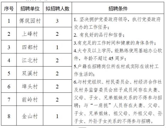 因工作需要,四都镇现拟招聘村务工作者15名,具体事项如下: