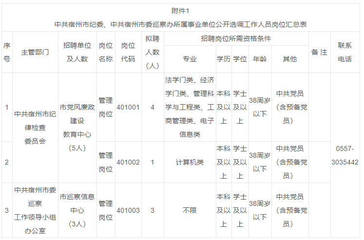 中共宿州市纪委、中共宿州市委巡察办所属事业单位公开选调工作人员公告