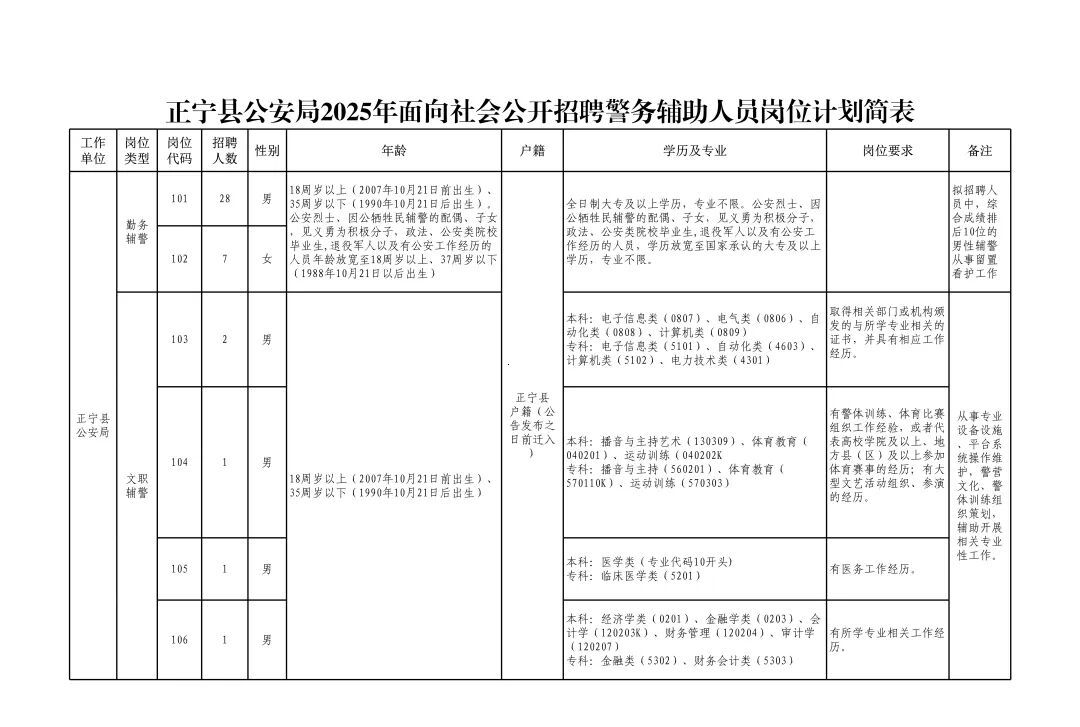 附件:正宁县公安局2025年面向社会公开招聘警务辅助人员岗位计划简表