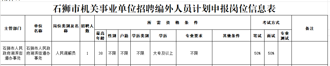 石狮市机关事业单位招聘编外人员计划申报岗位信息表(人民调解员).xlsx