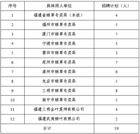 本批次计划招聘高校毕业生59人,具体计划如下: