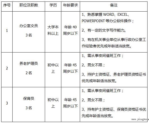 番禺区社会福利院是番禺区民政局属下的公益一类福利机构,主要为番禺区政府供养老人、社会各界自费入住老人及发生于番禺辖区范围内的弃婴(童)、孤儿提供收(送)养、医疗、康复、托管、养护、教育、临终关怀等专业服务。现因业务发展需要,向社会公开招聘编外合同工8名。