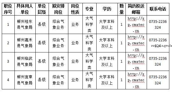 具体招聘岗位详见郴州市气象局2019年度事业单位招聘计划批复明细表(国家气象系统编制)