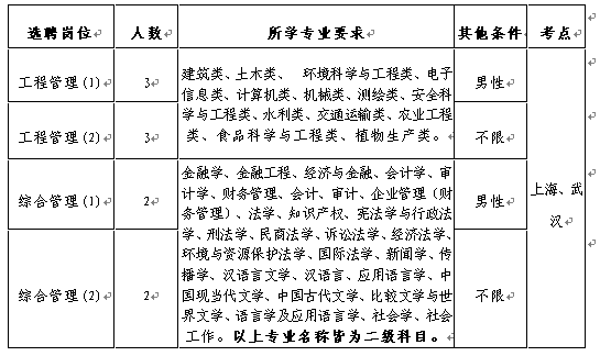 共选聘20名,其中上海10名(工程管理6名、综合管理4名);武汉10名(工程管理6名、综合管理4名)。