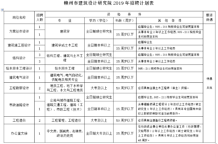 根据工作需要,赣州市建筑设计研究院现编制外面向社会共公开招聘19名工作人员。