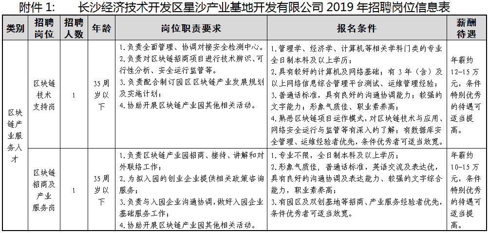 1、《长沙经济技术开发区星沙产业基地开发有限公司2019年招聘岗位信息表》;