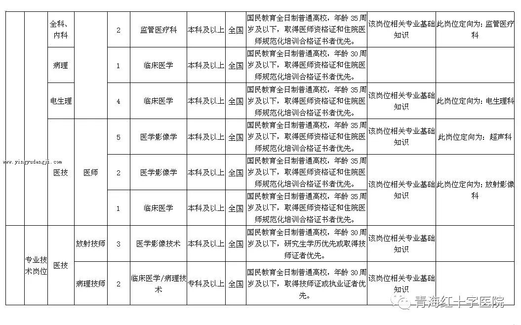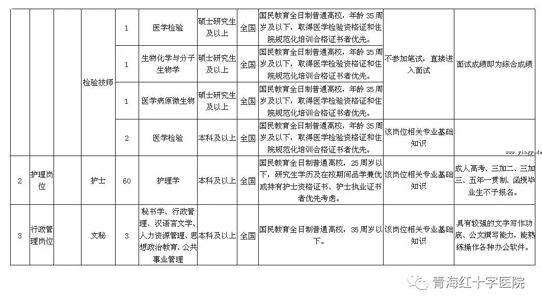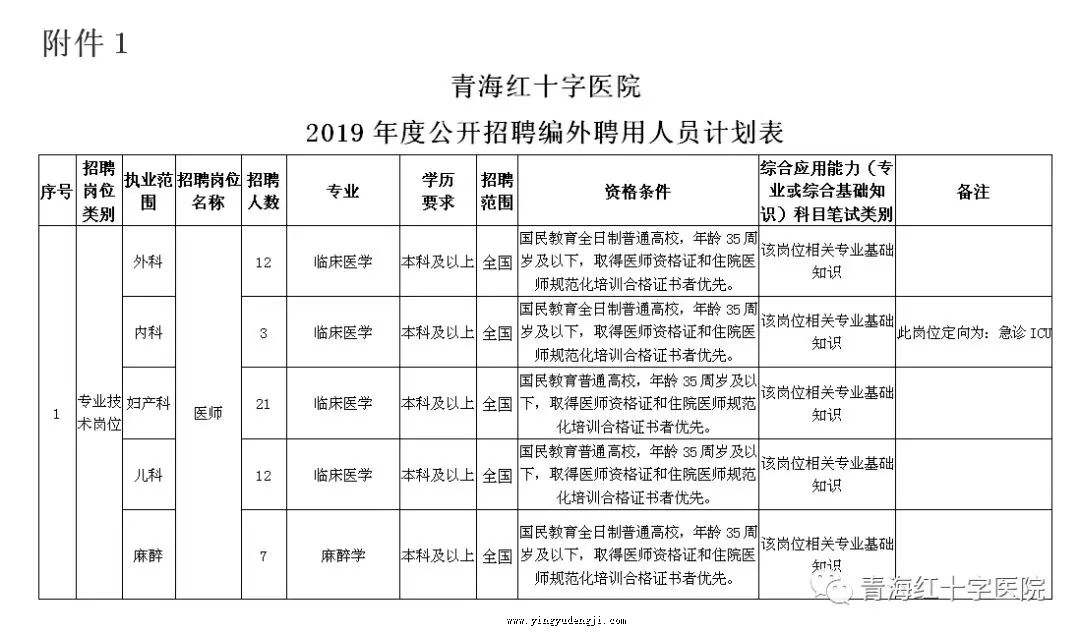 此次公开招聘范围面向全国,具体岗位及要求详见附件:《青海省红十字医院2019年度公开招聘编外聘用人员计划表》。