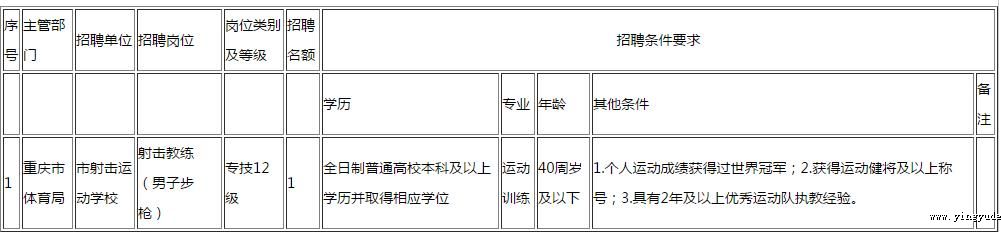 附件:重庆市射击运动学校考核招聘工作人员岗位条件一览表