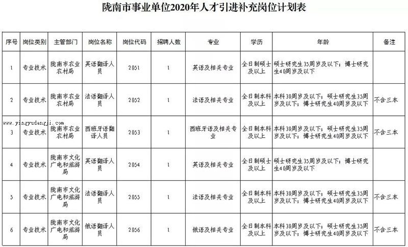 陇南市事业单位2020年人才引进工作领导小组办公室