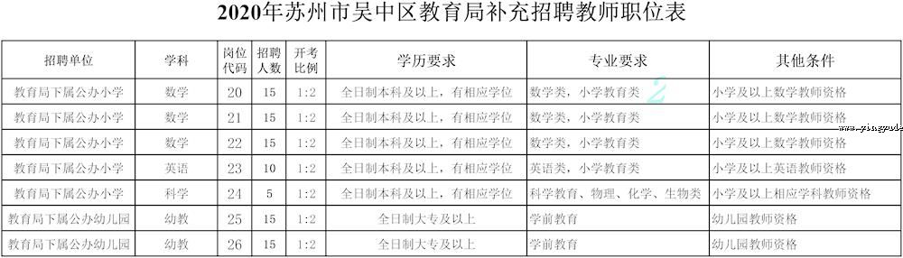 附件:《2020年苏州市吴中区教育局补充招聘教师职位表》