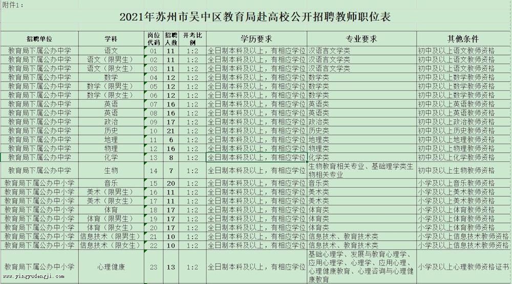 附件:1.《2021年苏州市吴中区教育局赴高校公开招聘教师职位表》