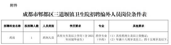 成都市郫都区三道堰镇卫生院招聘编外人员岗位条件表.pdf