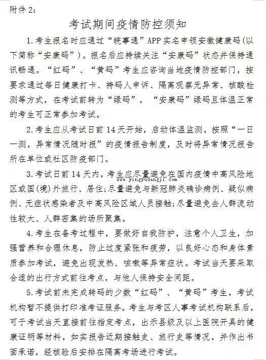 报考人员报名前,应通过“皖事通”APP实名申领“安康码”。报考人员报考前请认真阅读《考试期间疫情防控须知》(附件2)。报考人员提供的信息必须与本人实际情况、报考条件和所报考的岗位要求相一致。凡弄虚作假通过资格审查,其实际情况与报考条件规定不符的,一经查实,即取消考试、聘用等资格。