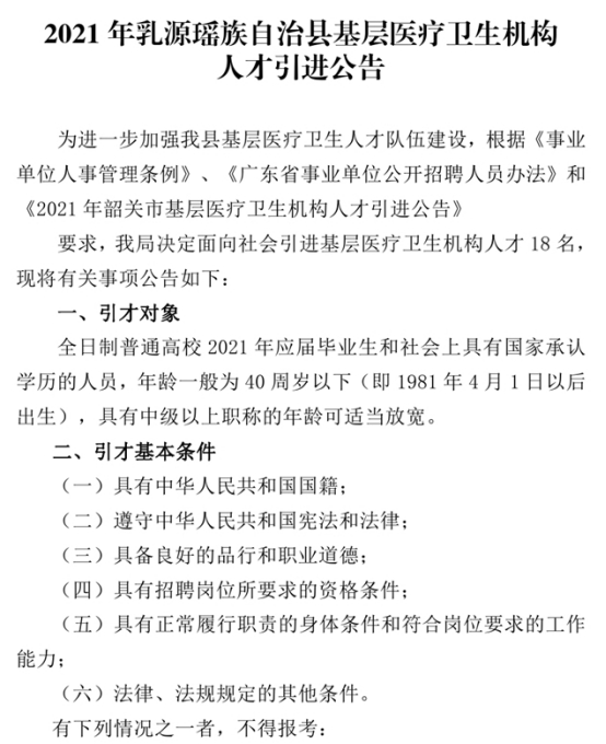附件1:2021年乳源瑶族自治县基层医疗卫生机构人才引进职位表.xls