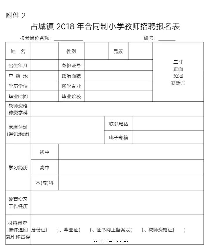 2.占城镇2018年合同制小学教师招聘报名表