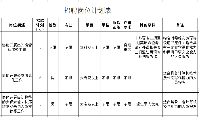 7、具有《招聘岗位计划表》要求和国家、省以及公安机关规定的其他条件。