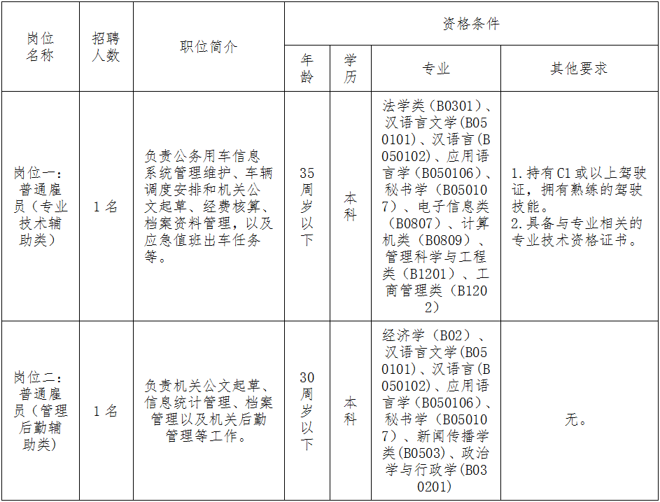 5.专业技术资格证书和驾驶证复印件各1份(仅需报名岗位一的人员提供);