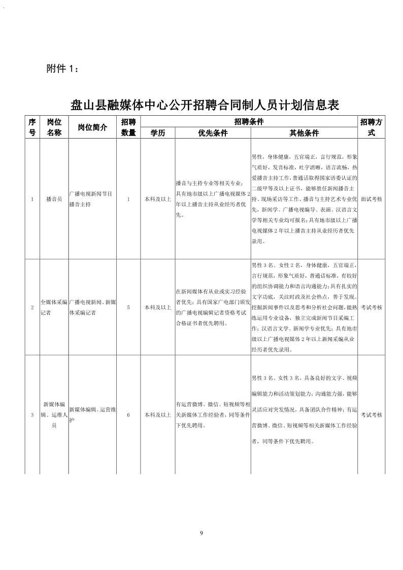 要求:男性3名、女性2名,身体健康,五官端正,言行规范,形象气质好,普通话标准,有较好的组织协调能力和语言沟通能力;具有扎实的文字功底,关注时政及社会热点,善于发现、挖掘新闻事件以及思考和分析社会问题;汉语言文学、新闻学专业优先;具有地市级以上广播电视媒体2年以上新闻采编从业经历者优先录用。