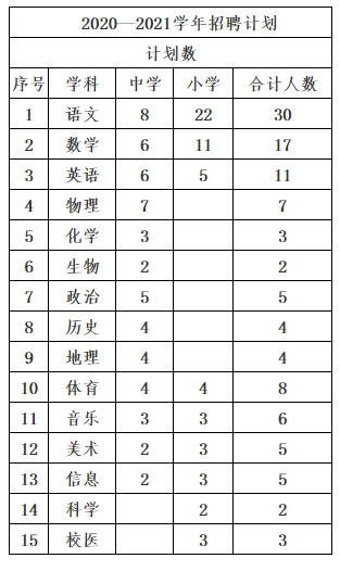 随着学校办学规模扩大,2021面向全国招聘中小学各学科优秀教师。