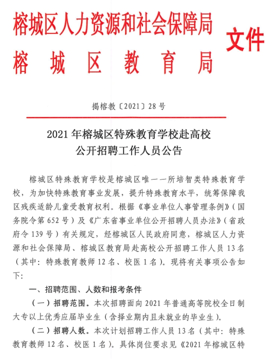 附件:2021年榕城区特殊教育学校公开招聘工作人员岗位表.xls
