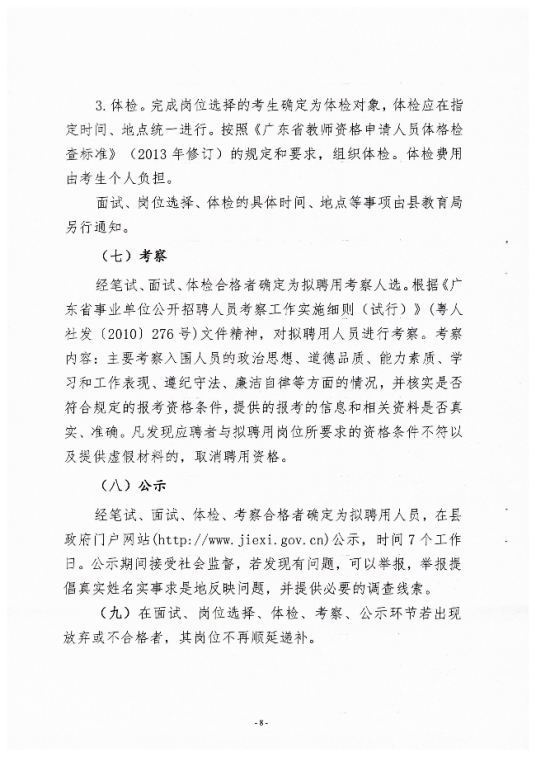 谨防受骗提示:如果报名时出现收费或汇款等情况,请广大考生注意分辨真伪,谨防上当受骗。 特别说明:由于各方面情况的不断调整与变化,广东教师招聘网所提供的所有考试信息仅供参考,敬请考生以权威部门公布的正式信息为准。 本站招聘信息来自各地人社局、政府网、人事考试网、教育局、高校、中小学等官方信息,快速及时、权威可靠。如果有侵犯版权请联系下方站长qq,我们将在24小时之内删除! |