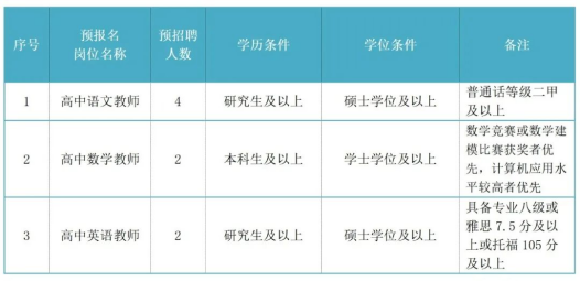 全日制本科及以上学历,所学专业对口,具备高级中学教师资格条件,能胜任高中教育教学工作,班级管理能力强。