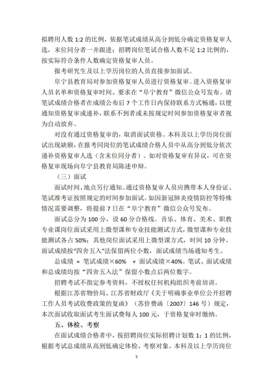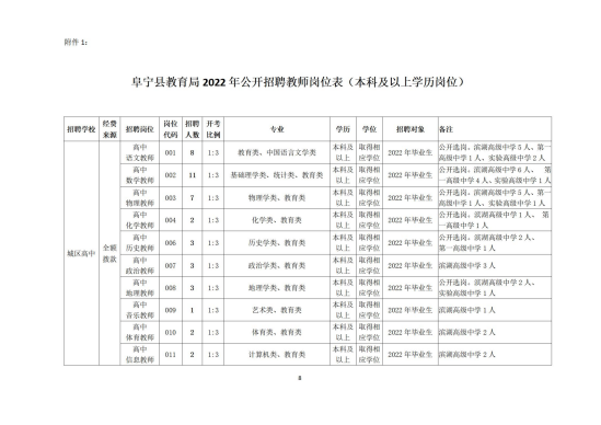 2022年江苏省盐城市阜宁县教师招聘方案(183名)