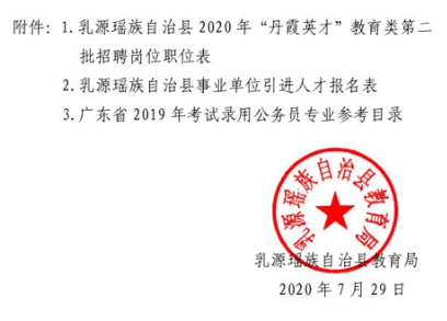 附件:附件1:乳源瑶族自治县2020年“丹霞英才”教育类第二批招聘岗位职位表.xls