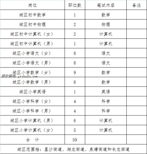 2、面向社会公开招聘城区义务教育阶段教师59名