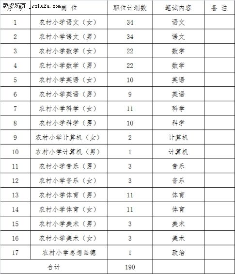 3、面向社会公开招聘农村义务教育阶段教师190名