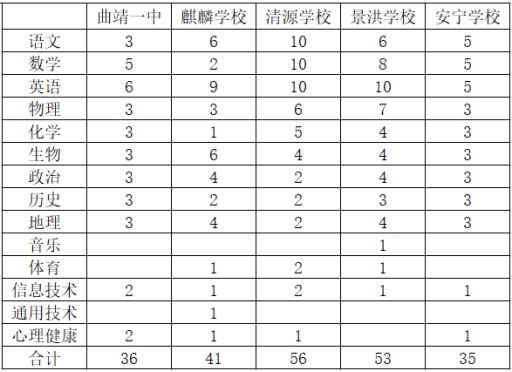 本次招聘除曲靖一中外,所属集团校包括编制教师和聘任制教师两种,参加招聘的教师具体与校方达成协议。根据各学校实际情况,现将教育集团2021年引进“珠源百人计划”教育人才招聘公布如下: