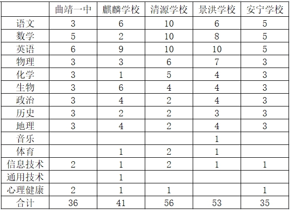 本次招聘除曲靖一中外,所属集团校包括编制教师和聘任制教师两种,参加招聘的教师具体与校方达成协议。根据各学校实际情况,现将教育集团2021年引进“珠源百人计划”教育人才招聘公布如下: