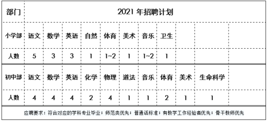 二、为进一步优化教师队伍,选择优质教育资源,满足学校发展需要,现拟招聘: