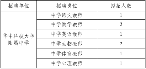 华中科技大学附属中学是教育部直属重点大学附属中学,湖北省省级示范学校。因工作需要,现面向社会公开招聘骨干中学教师共8人。