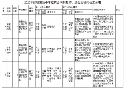 昆明滇池中学2020年招聘合同制教师、综合文秘公告