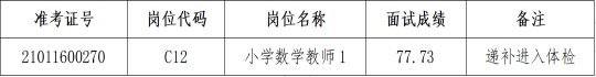 因部分考生放弃在我区的择业资格,根据《无锡高新区(新吴区)教育系统2021年校园招聘教师公告(二)》规定,按照报考同一岗位的人员,面试成绩从高到低依次递补的原则,现有以下考生递补进入体检环节: