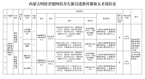 内蒙古阿拉善盟阿拉善左旗引进教育紧缺人才公告