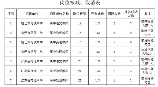 宿迁市2021年市直教育系统第一批公开招聘岗位核减、取消公告