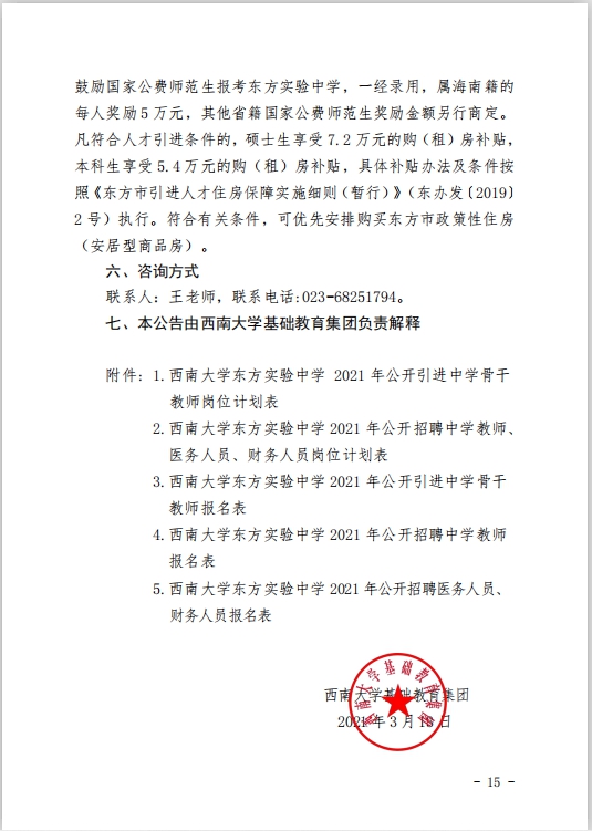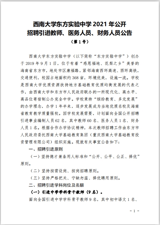 附件1:西南大学东方实验中学2021年公开引进中学骨干教师岗位计划表.xls