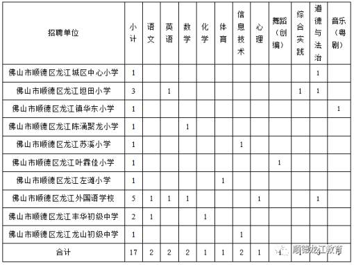 2021年顺德区龙江镇面向社会公开招聘教师岗位需求表: