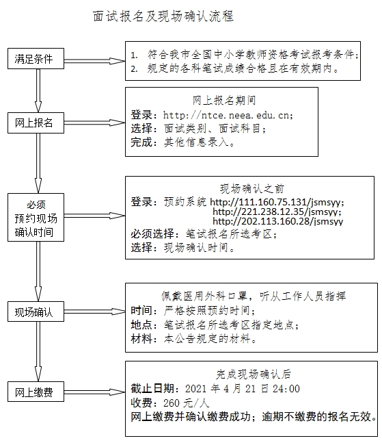 按照教育部考试中心《关于2021年中小学教师资格考试考务相关事项的通知》(教试中心函〔2020〕115号)要求,现将2021年上半年我市全国中小学教师资格考试面试相关事项公告如下: