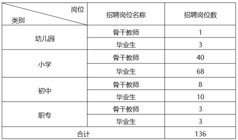 (3)教师资格证要求:幼儿园岗位须具备幼儿园教师资格证;小学岗位须具备小学或中学教师资格证;初中岗位须具备中学教师资格证;职专基础学科教师岗位(数学、历史)须具备中学及以上的教师资格证。