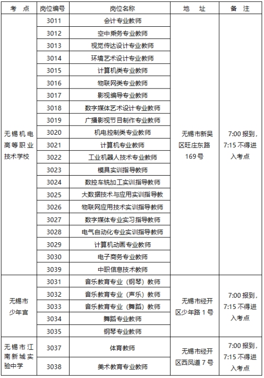 1. 2021年无锡市教育局直属院校公开招聘教师专业技能考查考点安排